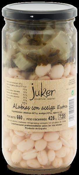 Alubia tierna de primera calidad combinada con acelga fresca, elaboradas sin conservantes, exclusivamente con agua y sal.