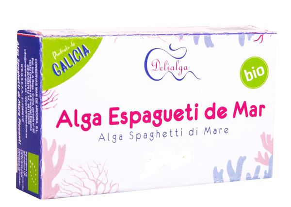 Ingredientes: Alga espagueti de mar* (Himanthalia elongata), agua, sal. *De producción ecológica (Producto ecológico y elaborado a partir de materias primas ni compuestas, ni producidas a partir de OGM)