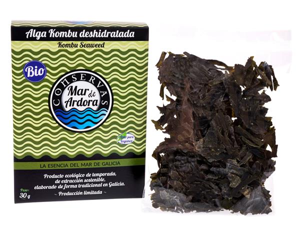 Ingredientes: Alga kombu (Laminaria sp.)* deshidratada a baja temperatura (<42ºC).*De producción ecológica. (Producto ecológico y elaborado a partir de materias primas ni compuestas, ni producidas a partir de OGM)