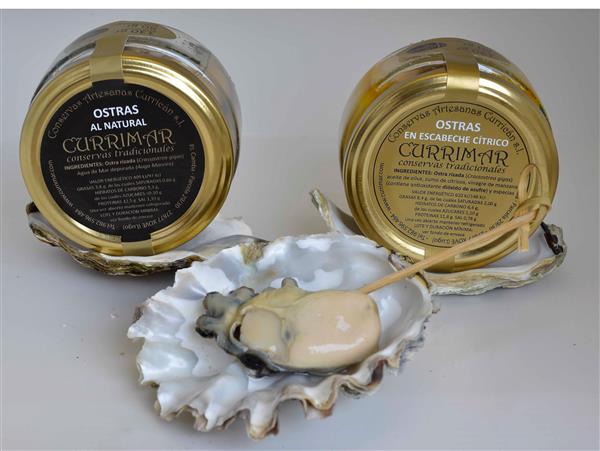 Ostras salvajes de nuestras rías presentadas al natural, conservadas en agua de mar depurada.