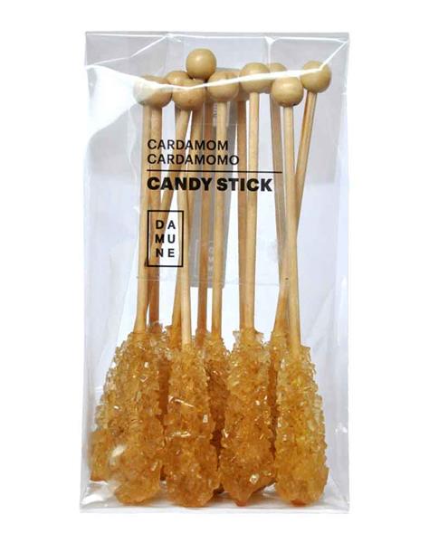 Menos procesado que el azúcar blanco de uso común y con un 20% menos de calorias, alivia la tos, es un refrescante bucal, efectivo contra el dolor de garganta, alivia el dolor de barriga y de los periodos menstruales.Endulzca de manera natural y saludable sus cafés, tés e infusiones.Cada stick (palito de azúcar) con 8g de azúcar candy es para una taza de café, té o infusión. Dependiendo de la cantidad de dulzor que se desee se puede dejar diluir una parte o toda la cantidad de azúcar candy.Recomendamos que para apreciar toda la melosidad del azúcar candy, éste se ponga en la taza o vaso cuando el contenido esté caliente y remover con el stick para una más rápida disolución. También se pueden tomar a modo de piruleta.A nuestra gama de candy stick hemos querido añadir a las propiedades saludables de éste, hierbas y especias con efectos beneficiosos para la salud. Otras variedades: Azafrán, Canela, Menta, Gengibre, Hibisco, Limón, Comino y Blanco. Ingredientes: azúcar cristalizado, cardamomo y agua.