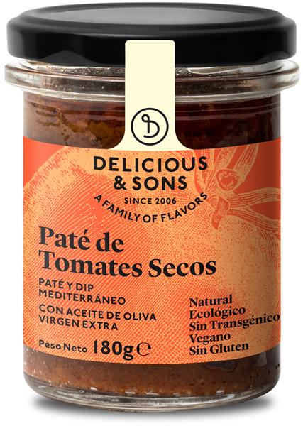 Creado a partir de auténticos y carnosos tomates secos, este paté de intenso aroma y sabor, está listo para usar y tomar en bocadillos y canapés, así como para acompañar ensaladas, carnes, aves y pescados. Resulta ideal como ingrediente de salsas para pasta, combina a la perfección con quesos y es muy sabroso como “dip” con verduras crudas. Receta producida con aceite de oliva virgen extra. Está certificado Ecológico, Sin Gluten, Vegano, Vegetariano. Sin Transgénicos. No contiene huevo.