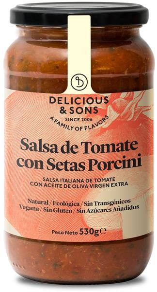 Con tomates rojos de intenso color y sabor, recolectados en su justa maduración bajo el sol del Mediterráneo y auténticas setas porcini, creamos esta salsa llena de aroma y sabor. Salsa auténtica pero con una fabulosa innovación: mantener el gran sabor de los tomates pero producirla sin azúcares añadidos. Resulta ideal para tomar con pasta, especialmente con larga, como linguini, espagueti, papardelle y fettucine. Sorprende como ingrediente de lasan~as con o sin carne, parmesana de berenjenas, albóndigas, pollo y para acompañar cualquier plato de carne, ave o pescado. Receta producida con aceite de oliva virgen extra. Está certificada Ecológica, Sin Gluten, Vegana, Vegetariana. Sin Transgénicos ni Azúcares Añadidos. No contiene Huevo.