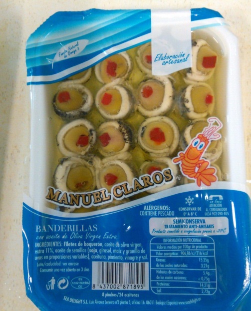 BANDERILLAS DE BOQUERONES EN VINAGRE Y ACEITUNAS RELLENAS CON ACEITE DE OLIVA VIRGEN EXTRA