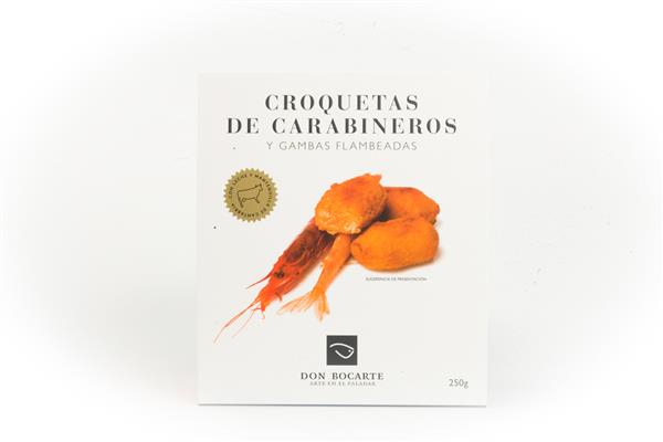 CROQUETAS DE CARABINEROS CON GAMBAS FLAMBEADAS