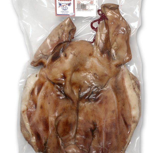 Cachola o cabeza de cerdo deshuesada y salada de manera tradicional. Se presenta envasada en mitades en termo-formado.
