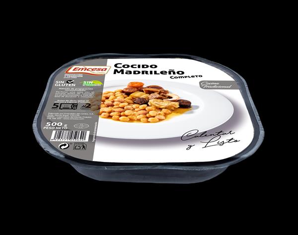 Garbanzos, pollo, morcillo, zanahoria, tocino, chorizo, morcilla, punta de jamón. Elaborado siguiendo la receta tradicional Madrileña.