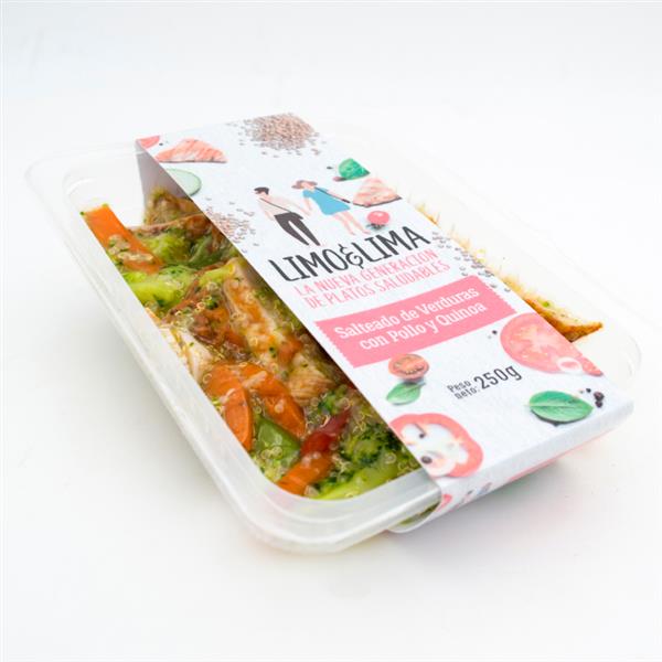 Plato preparado con quinoa cocida, verduras y pollo marinado salteados y aromatizado con especias y aromas. Producto SIN CONSERVANTES NI COLORANTES. Producto pasteurizado.