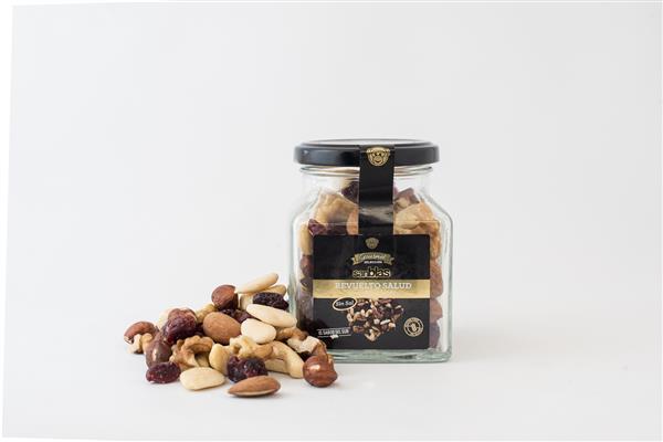 Nuevo Revuelto Salud "Gourmet" con Almendra tostada con piel, Almendra repelada frita, Nuez pelada, Anacardo frito, Arándano deshidratado y Avellana cruda