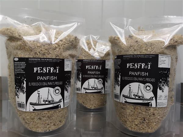El PANFISH es un rebozado de miga de PIEL DE BACALAO y se diferencia de nuestro tradicional pan rallado en su elaboración y en su gran resultado. El PANFISH se tritura siempre recién confecionado y nunca incluyen restos como escamas ni espinas, con lo que se consigue un rebozado muy especial, mucho más ligero y muy crujiente. Además, su gran ventaja es que no absorbe casi aceite y los rebozados no se abren ,gracias al pegamento natural que aporta la propia piel,la gelatina del bacalao, así nuestros rebozados resultan más saludables y más apetitosos.Al ser un producto proveniente del mar,NO CONTIENE GLUTEN Y ES RICO EN OMEGA 3,es apto para frituras y para horneados ,dejando el mismo crujiente característico,apto para el rebozado de alimentos y su congelación ,no perdiendo sus propiedades ni su crujiente, Como es obvio, el PANFISH es apto para celíacos, puesto que es un preparado proveniente del bacalao,natural 100x100 ,sin ningun tipo de alteracion quimica .Nuestro PANFISH es el esfuerzo de muchos meses de investigacion y pruebas,hasta ver como resurge al mercado nacional.Se presenta con varios sabores,NATURAL ,CURRY Y PAPRIKA.Estos sabores no trastocan el sabor ni el crujiente del rebozado,solo aportan unos rasgos que no dejan indiferente ningun exquisito paladar.