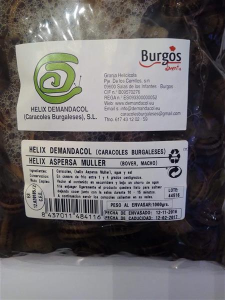 El caracol se presenta limpio y semi cocido, tratado termicamente y en bolsas de 1kg listo al uso, únicamente faltaría añadirlos a su salsa preferida.