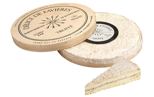 Combina el sabor y la textura del Brie de Meaux con el sabor fuerte y potente de la trufa. Contiene un 3% de trufas de calidad óptima: Trufas negras de Périgord. Elaborado con leche cruda de vaca y con una textura sedosa. Interior con trozos de trufas, exquisito para el paladar.