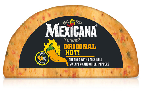 Queso cheddar inglés elaborado con leche de vaca. Mezclado con pimientos picantes rojos y verdes, chiles jalapeños y espolvoreado con pimentón. Visualmente muy atractivo, de color llamativo y sabor ligeramente picante.