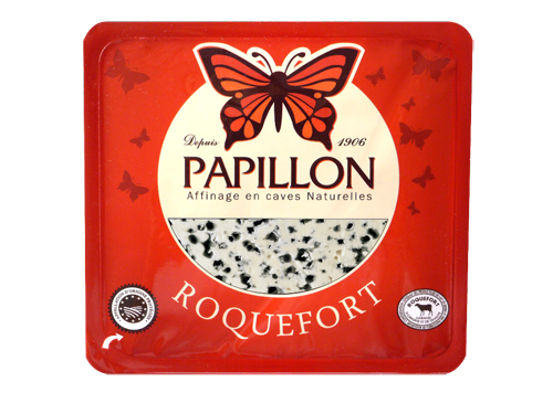 Roquefort Rojo con DOP con 4 meses de maduración. Presentado en un cómodo envase que permite proteger las cualidades del producto facilitando su almacenaje en el frigorífico
