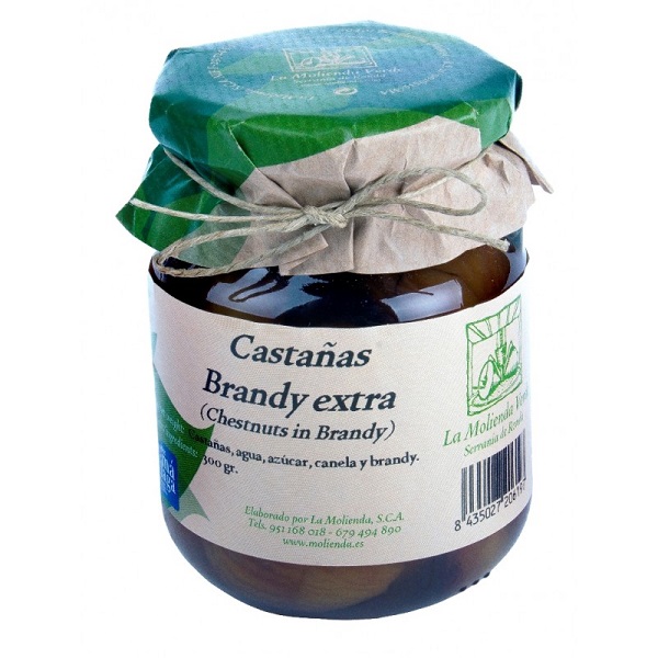 CASTAÑAS ENTERAS  CONFITADAS EN ALMÍBAR  AROMATIZADO CON CANELA Y  BRANDY
