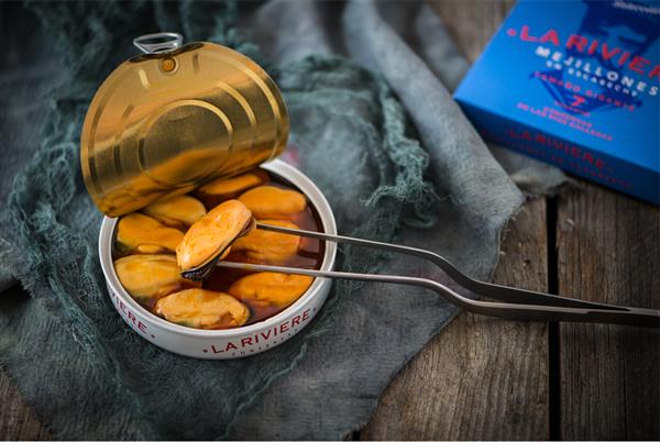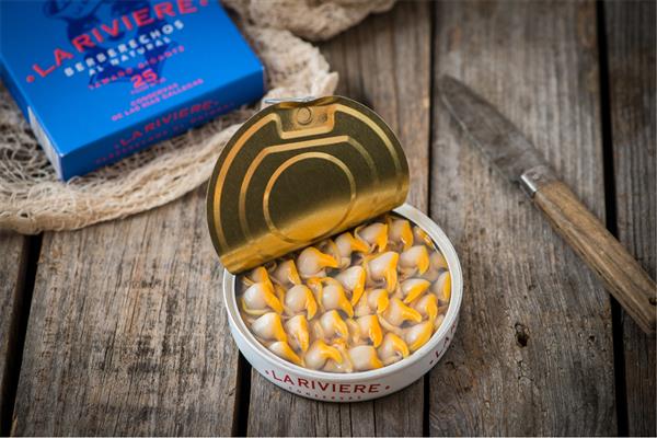 Las conservas “La Riviere” provienen de una exigente selección de berberechos, mejillones, almejas y navajas en las Rías Gallegas.