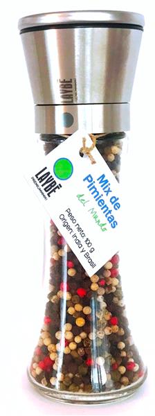 Molinillo cristal Acero inox. Mix de Pimientas 100g.