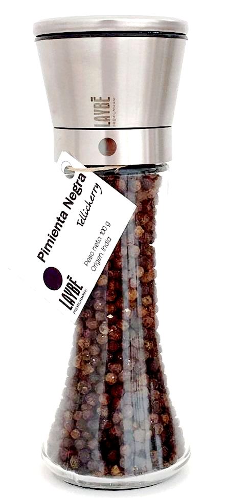 Molinillo cristal-Acero inoxidable. Pimienta Negra Tellicherry 100 g.