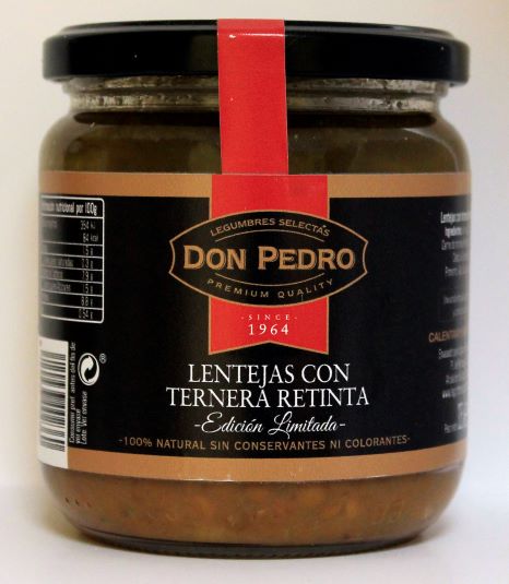 Lentejas con Ternera retinta, cocinadas de forma natural, sin conservantes. Listas para tomar.