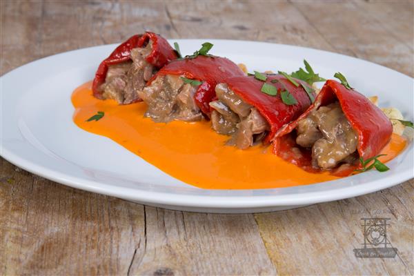 PIMIENTOS RELLENOS DE CARNE CON EMULSIÓN DE PIQUILLOS