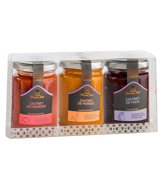 Estuche compuesto por tres sabores de chutneys de 100g: