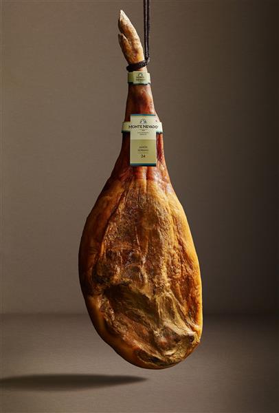 Jamón serrano "24", procedente de animales de tronco celta criados en España, seleccionados por su tamaño, madurez y proporción de materia grasa.