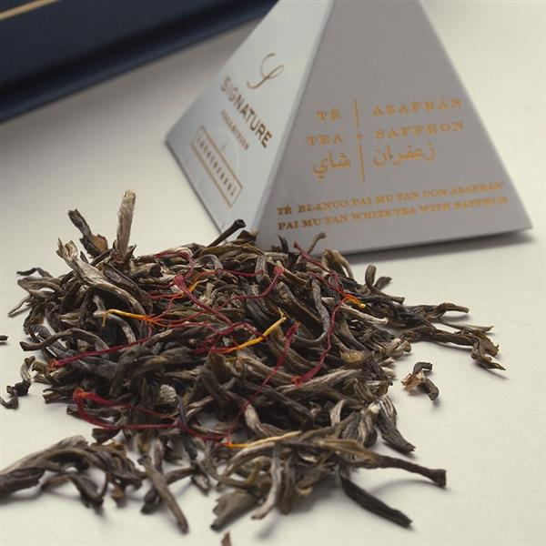 Ingredientes: Té blanco Pai Mu Tan con azafrán.