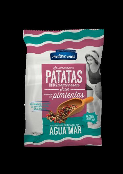 PATATAS FRITAS LISAS (CALDERA KETLE) AGUA DE MAR. SELECCIÓN DE PIMIENTAS.