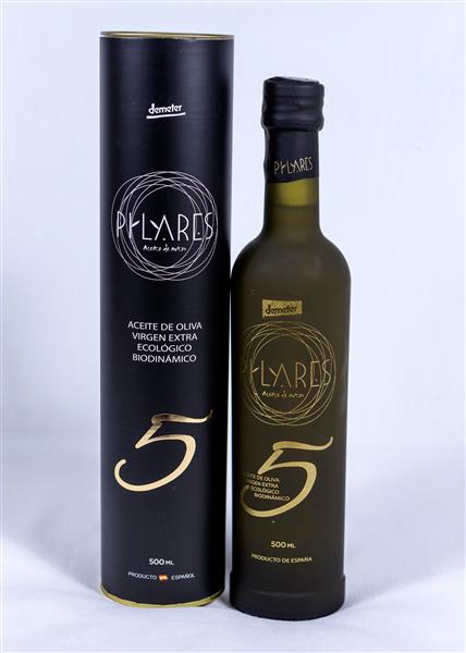 Pilares 5, es el coupage de todas las variedades de aceitunas que tenemos en nuestra finca, lechín, picual, manzanilla, arbequina y verdial. Del que se obtiene un aceite muy equilibrado y de unos matices muy frutados.