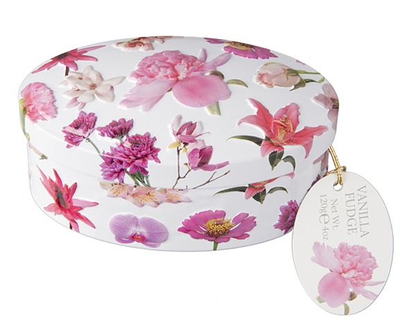 Parte de la gama de regalos, esta lata es un regalo perfecto. Bellamente decorada con ilustraciones de orquídeas, en su interior encontrará el delicioso fudge de vainilla, suave y delicado dulce de vainilla hecho a mano según la receta tradicional de Gardiners.