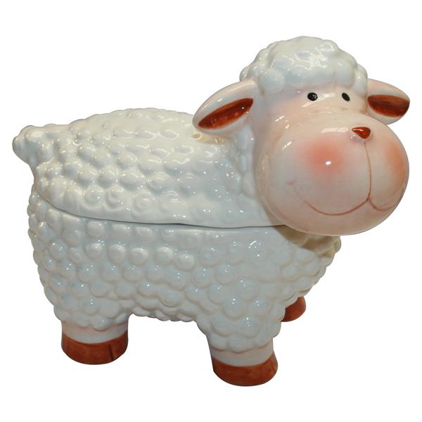 Cerámica en forma de ovejita rellena de deliciosas galletas mini clotted cream de Grandma Wild's.