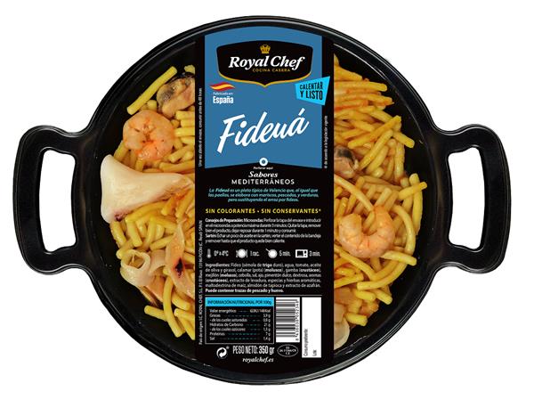 La fideuá es un plato de fideos que se elabora en una paella. El plato es muy parecido a la paella de mariscos sólo que se sustituye el arroz por unos fideos especiales (fideos gordos). La fideuá lleva mariscos (sepia o pota, gambas y mejillones) y un buen caldo de pescado. Sin colorantes ni conservantes.