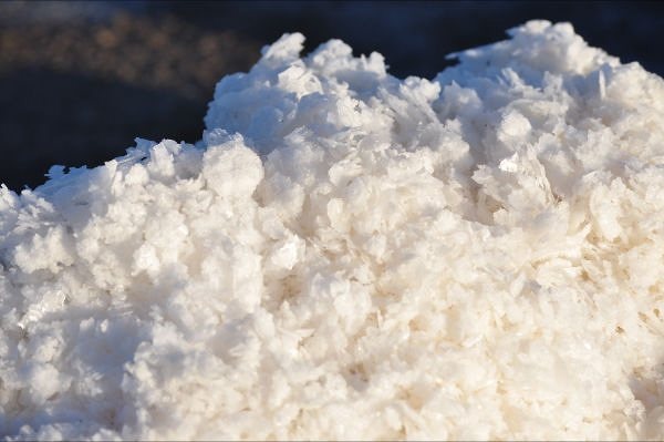 MOSTRAMOS EN LA FOTO LA ESCAMA DE SAL RECIÉN RECOLECTADA. SU ESTRUCTURA ES PLANA, DEBIDO A QUE SE HA PRODUCIDO DE FORMA NATURAL BAJO EL CALOR DIRECTO DEL SOL (DESDE ARRIBA) FORMÁNDOSE ASÍ CON UNA FORMA SIMILAR A LA ESCAMA DE UN PESCADO.