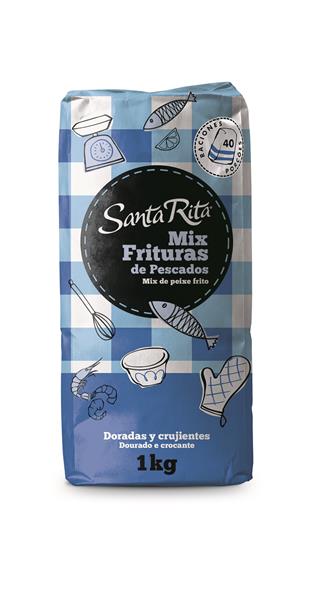 Harina Santa Rita,  Mix Frituras. Elaboramos un preparado ideal para la fritura de todo tipo de alimentos, con una formula exclusiva a base de harina de trigo y maíz, junto con una delicada sémola de maíz y sal, que potencia el sabor de una forma natural.   Sustituimos la harina de garbanzo, y la harina de trigo duro, típicas de la fritura andaluza, por una harina muy fina de maíz, que absorbe muy poco aceite, y da un aspecto muy crujiente a todas sus frituras, tanto de carnes, pescados, verduras …