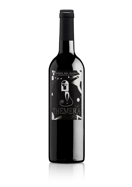 THÉMERA TINTO CRIANZA: Tiene Denominación de Origen (D.O.) Ribera del Duero y es un vino tinto con 13 meses de barrica que destaca por una esmerada elaboración que le convierten en el vino top de la marca. Thémera Tinto Crianza procede de la cosecha de 2015 y contiene la variedad de uva tempranillo de viñedos de Peñafiel (Valladolid).