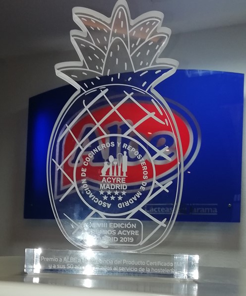 El pasado 21 de noviembre de 2019 tuvo lugar la entrega de los premios ACYRE en el Centro de Innovación Gastronómica de Madrid, acto en el que ALBE fue galardonada con el premio a la excelencia de Producto Certificado "M" y a los 50 años dedicados al servicio de la hostelería. Hoy queremos compartir este premio con todo el equipo, ya que ha sido gracias a su profesionalidad, esfuerzo y dedicación lo que ha hecho posible llegar hasta aquí.