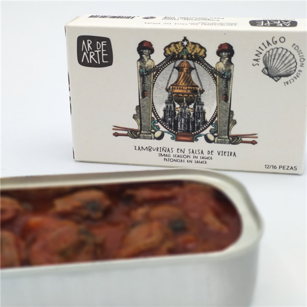 Cada conserva, una etapa del Camino de Santiago. Los diseños son obra de Celsius Pictor, dónde muestra leyendas y curiosidades del Camino de Santiago.