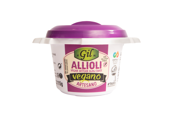 Allioli vegano, sin huevo, elaborado de forma artesana con ingredientes 100% naturales de primera calidad sin perder el sabor auténtico y característico de nuestro Allioli Artesano. Ideal para las patatas bravas aunque la podemos utilizar en muchas otras preparaciones. SIN CONSERVANTES – SIN GLUTEN