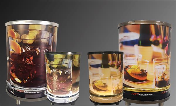 Cilindro de 2M de altura, totalmente iluminado con imágenes intercambiables.