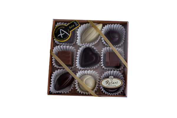 Deliciosos bombones surtidos elaborados de forma artesanal, con cobertura negra, leche y blanca. Rellenos de almendra, avellana, barquillo, caramelo, café.