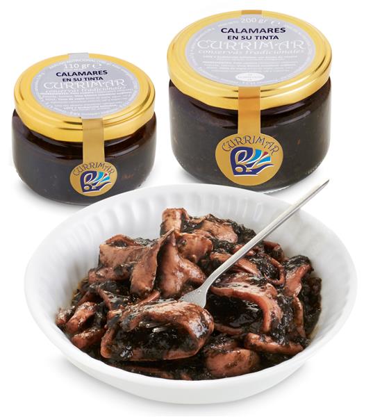 Otro plato clásico de la cocina española. Un sofrito de verduras hecho lentamente, al que se incorporan los trozos de calamar y la tinta que le otorga el color y la textura.