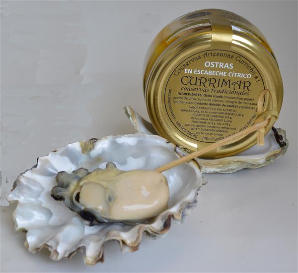 Ostras salvajes de nuestras rías conservadas en un escabeche cítrico, suave y fresco, muy fácil de comer.
