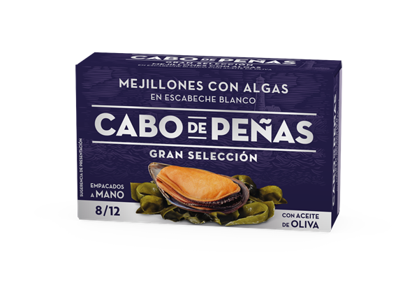 Conservamos exquisitos mejillones criados en batea y seleccionados en origen. Los elaboramos cuidadosamente de manera tradicional, cociéndolos al vapor y empacándolos a mano con deliciosas algas wakame y puerro. Finalmente, los aderezamos con nuestra receta especial de escabeche blanco, obteniendo como resultado una conserva de marisco de sabor y calidad excelente.