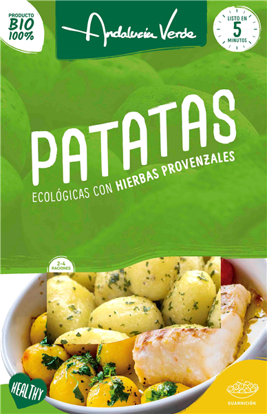 Pequeñas patatas de guarnición, preparadas con una mezcla especial de hierbas provenzales aderezadas con un toque justo de aceite de oliva virgen extra ecológico , y cocinadas al vapor , listas para calentar y emplatar