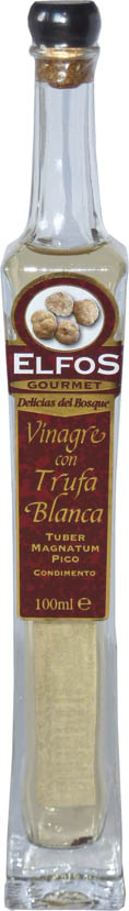 El vinagre es envejecido en barrica y madurado con trufas de primera calidad, las trufas son un lujo para los sentidos. Ideales para aderezos, encurtidos ligeros y caza, hortalizas, carpaccios, ensaladas, asados, edulcorados de hortalizas frescas, platos de champiñones o salsas reducidas de calmantes. El sabor final de estos vinagres lo sorprenderá por su ligereza y distinción. El vinagre de TRUFA BLANCA de Elfos Gourmet, nos permite aromatizar y enriquecer de manera sencilla gran cantidad de creaciones y recetas gastronómicas. Se elabora con auténticas trufas de la temporada, sin colorantes ni conservantes, por eso su sabor resulta tan exquisito y equilibrado, aportando un toque de distinción a todos aquellos platos a los que acompaña.
