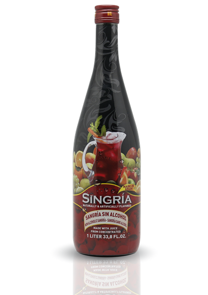 Singría es una bebida sin alcohol, inspirada en la Sangría tradicional y elaborada con zumos de uva y otras frutas, que le aportan su inconfundible sabor. Al no tener alcohol, es un producto apto para TODOS LOS PÚBLICOS. Carece, además, de gluten y de gas.