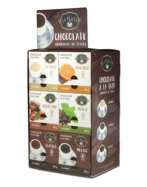 Expositor 6 estuches Chocolate a la taza sabores La Plata