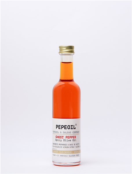 AOVE Ecológico macerado durante 12 meses en ghost pepper cultivadode forma ecológica en nuestra finca. Sin colorantes ni conservantes,el color rojo fuego del producto es fruto de una evolución naturalen su proceso de maceración y filtración.Tan solo unas gotas de este fantástico producto y podrás disfrutarde un sabor muy atenuado con un ligero retrogusto, añadiendo picantea cualquier plato, sin modificar ni una pizca su sabor original.Ingredientes: Aceite de oliva virgen extra ecológico (99%), chile(1%).