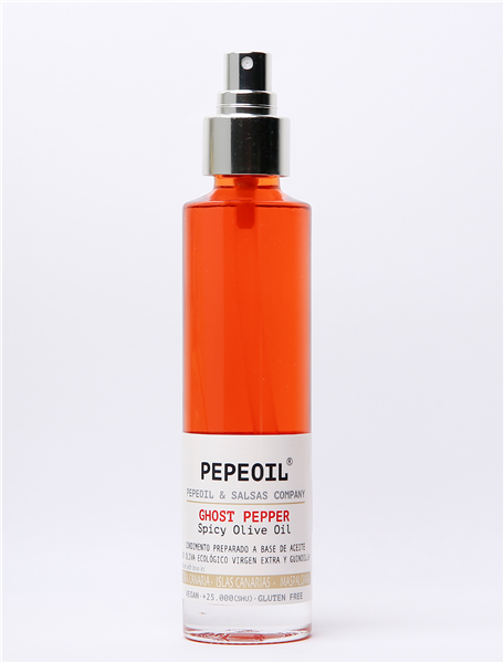AOVE Ecológico macerado durante 12 meses en ghost pepper cultivadode forma ecológica en nuestra finca. Sin colorantes ni conservantes,el color rojo fuego del producto es fruto de una evolución naturalen su proceso de maceración y filtración.Tan solo unas gotas de este fantástico producto y podrás disfrutarde un sabor muy atenuado con un ligero retrogusto, añadiendo picantea cualquier plato, sin modificar ni una pizca su sabor original.Ingredientes: Aceite de oliva virgen extra ecológico (99%), chile(1%).