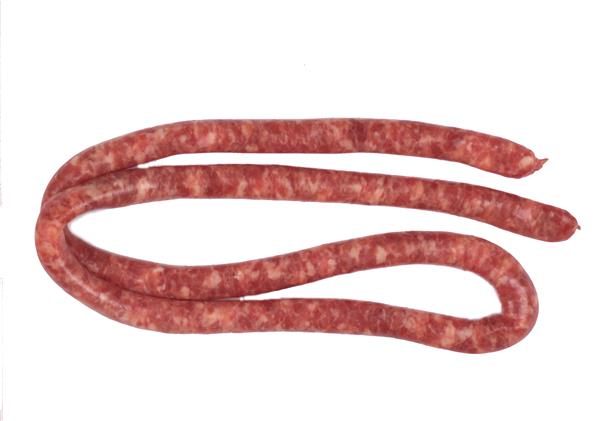 Está elaborado con carne picada fresca de cerdo, además de ajo y sal.
